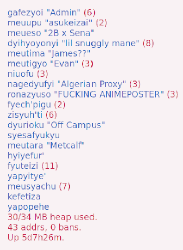 oh, and the numbers in parentheses mean how many websockets the client has open, which roughly means how fast the client is bouncing around threads and pages across the site
