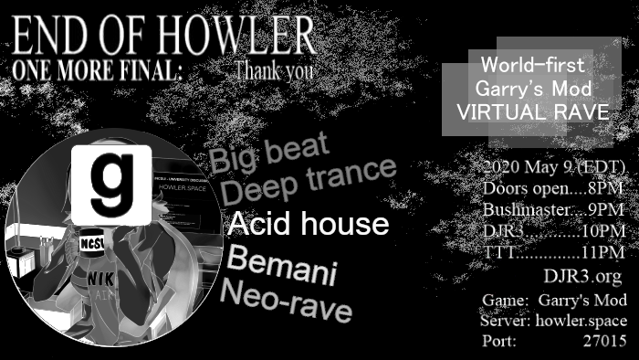 Keeping this in mind, we have decided to host the final event ENTIRELY ONLINE; we hope to see you there! We are in the process of setting up a GARRY'S MOD server to facilitate the VIRTUAL party; if you do not have Garry's Mod or cannot buy it, I will buy it for you, just drop your Steam name in the thread below.