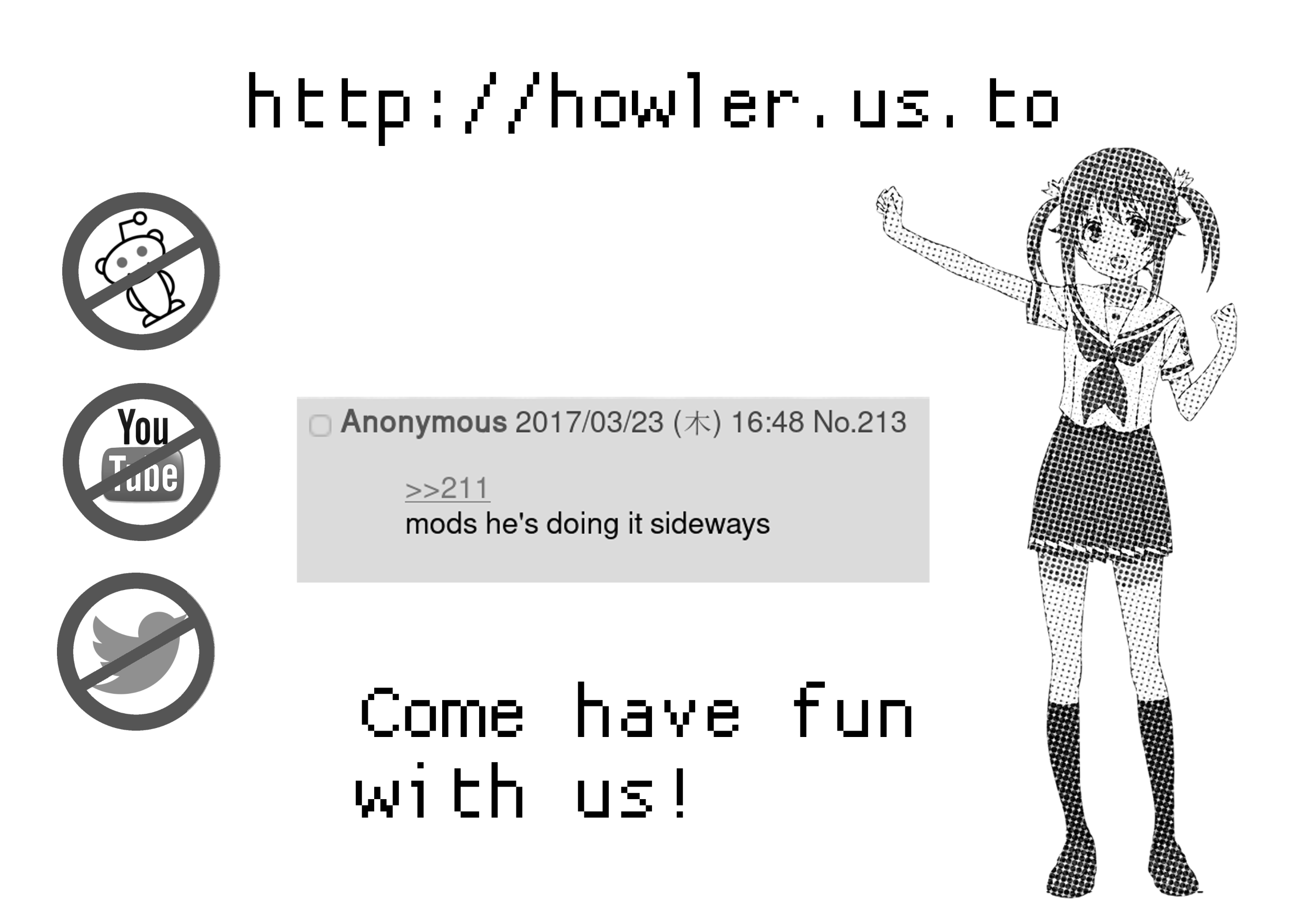 Powered by Wakaba Formerly powered by Doushio Maintained by Prettyboy Yumi
