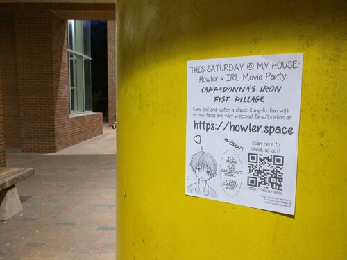 Additionally, Howler was an experiment in leveraging online anonymity to bring together / synthesize a community of friends in the real world using only the Internet.