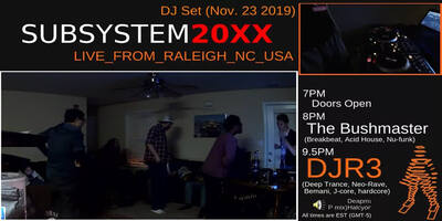Actually, the first person to play a set with me was Bakesta (DJ'ing under the moniker Bushmaster) while I DJ'd under the name DJR3 (derived from the tiger YAMATO track R3 from Beatmania IIDX). I believe the first time he went by Bushmaster was that Howlerween set (below) he played, consisting mostly of 90's jungle and UK garage (jungle, bushes, etc. it's a stretch but I respect it).