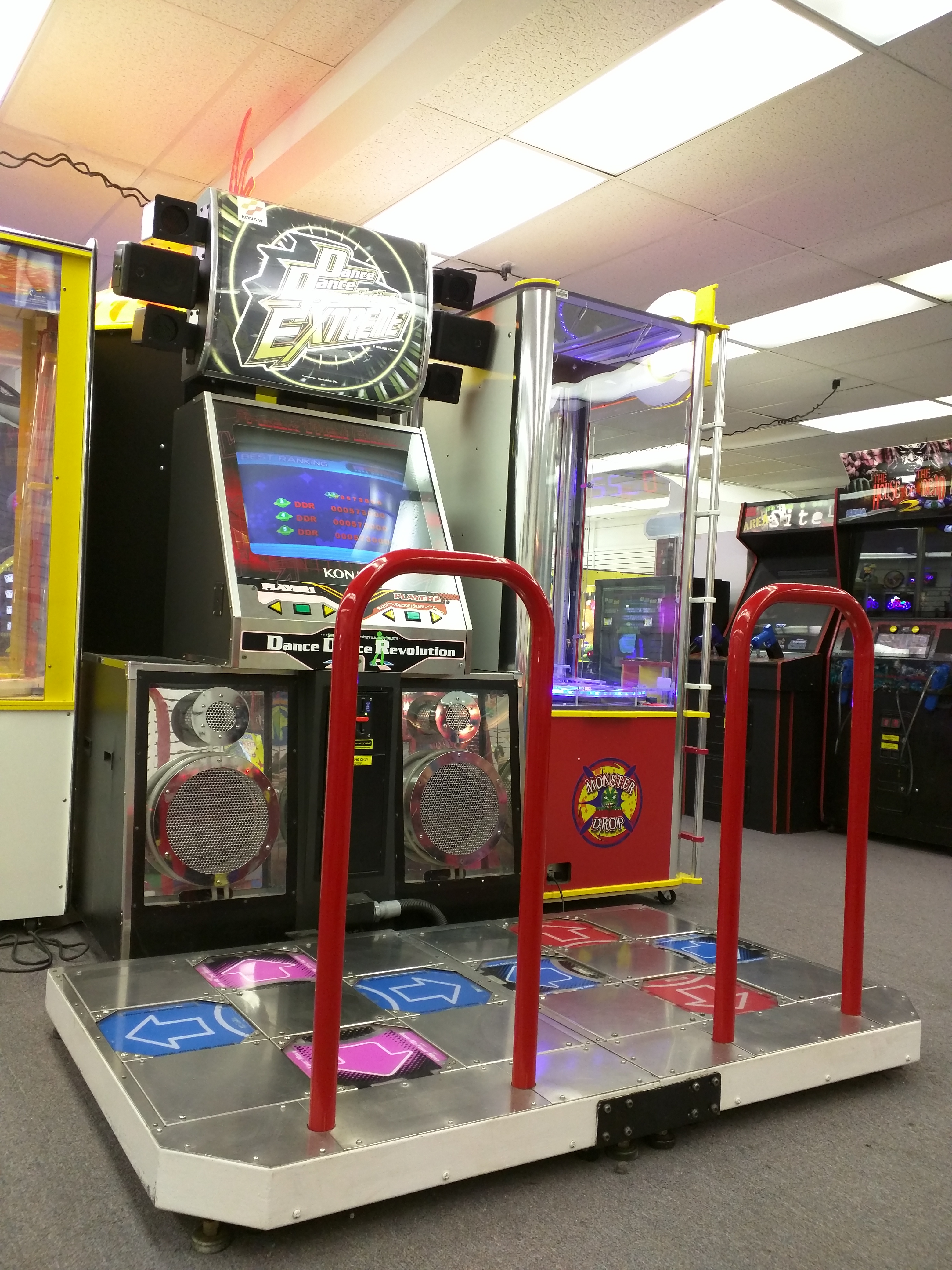 It's sort of an old hobby now but I like to play Dance Dance Revolution. Here's a picture of the DDR cabinet that was in grand Asheboro, NC before it was yanked into the great beyond by Namco