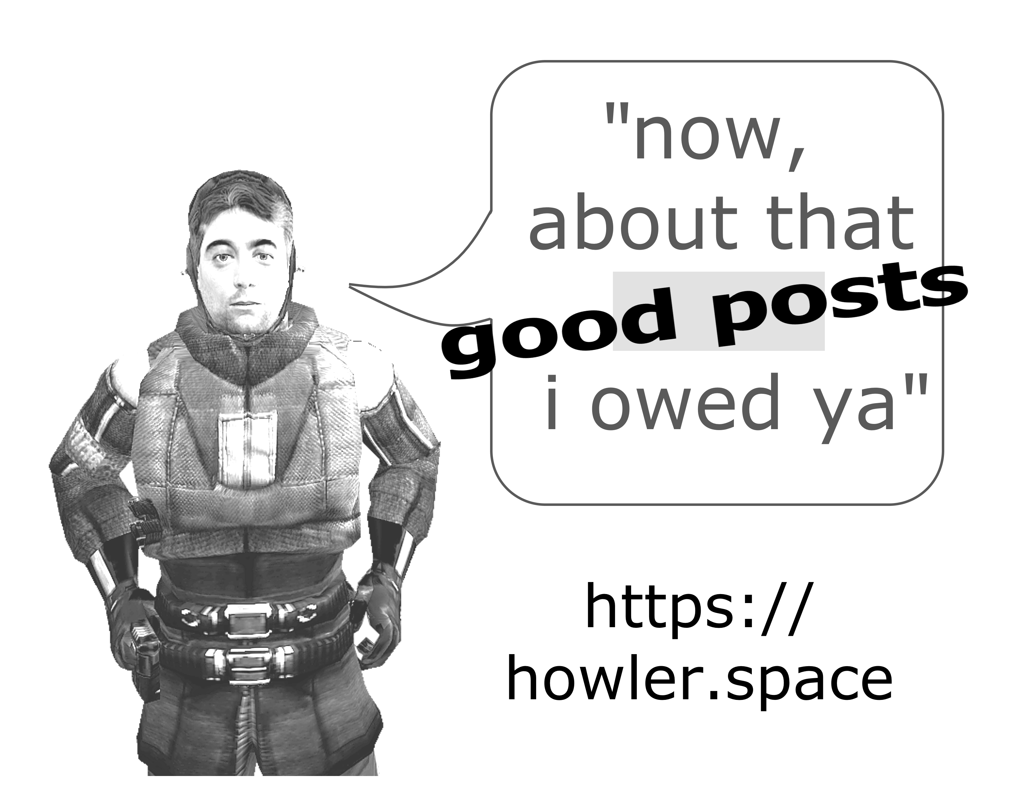 Hi howler,It's your poster-boy. I'm posting shit up next week so hit me with any ideas you have. Otherwise it's up to me picture related