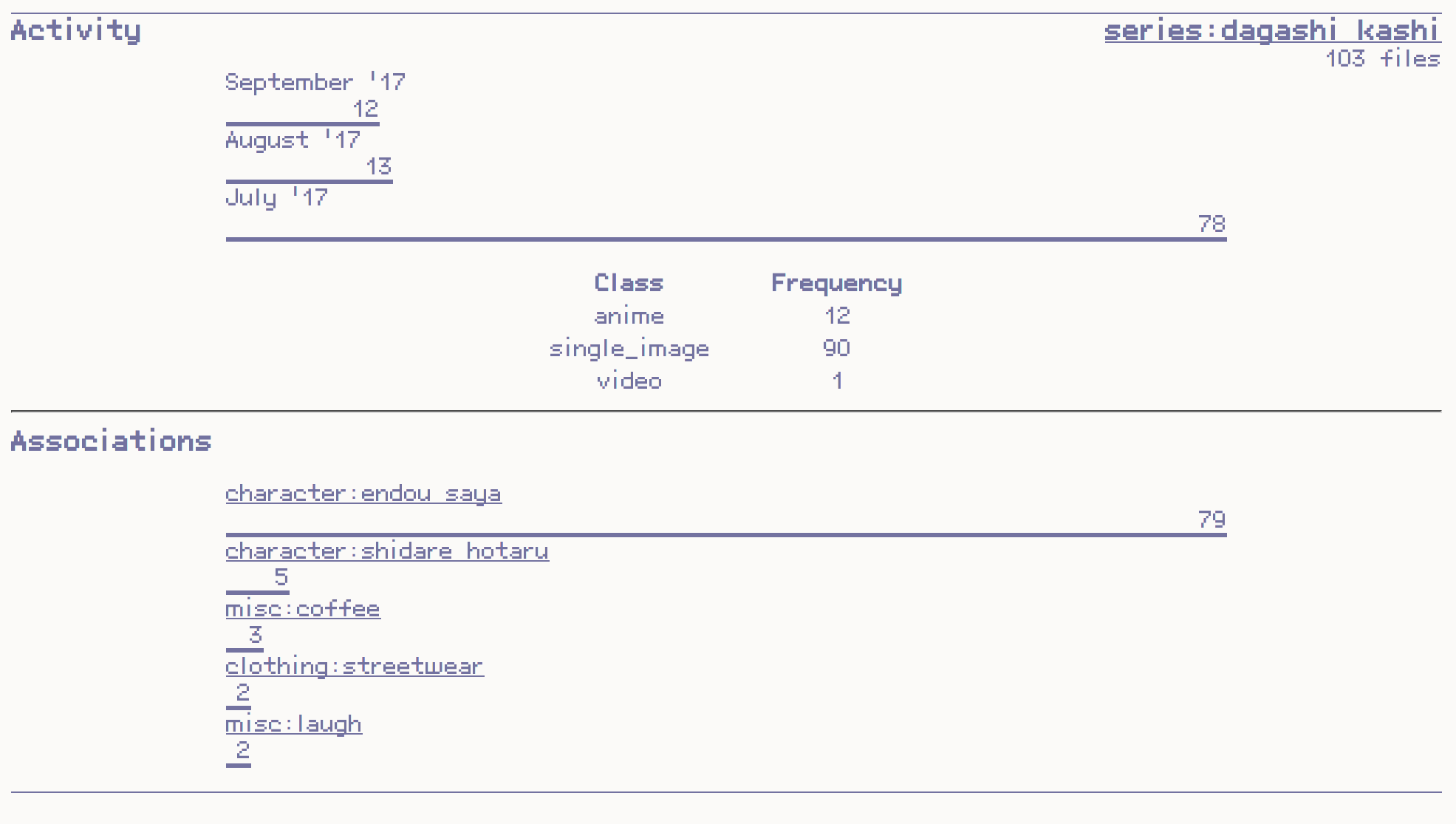 In a much more practical sense, it is evident that almost every picture tagged "akemi homura" also has the "puella magi madoka magica" tag