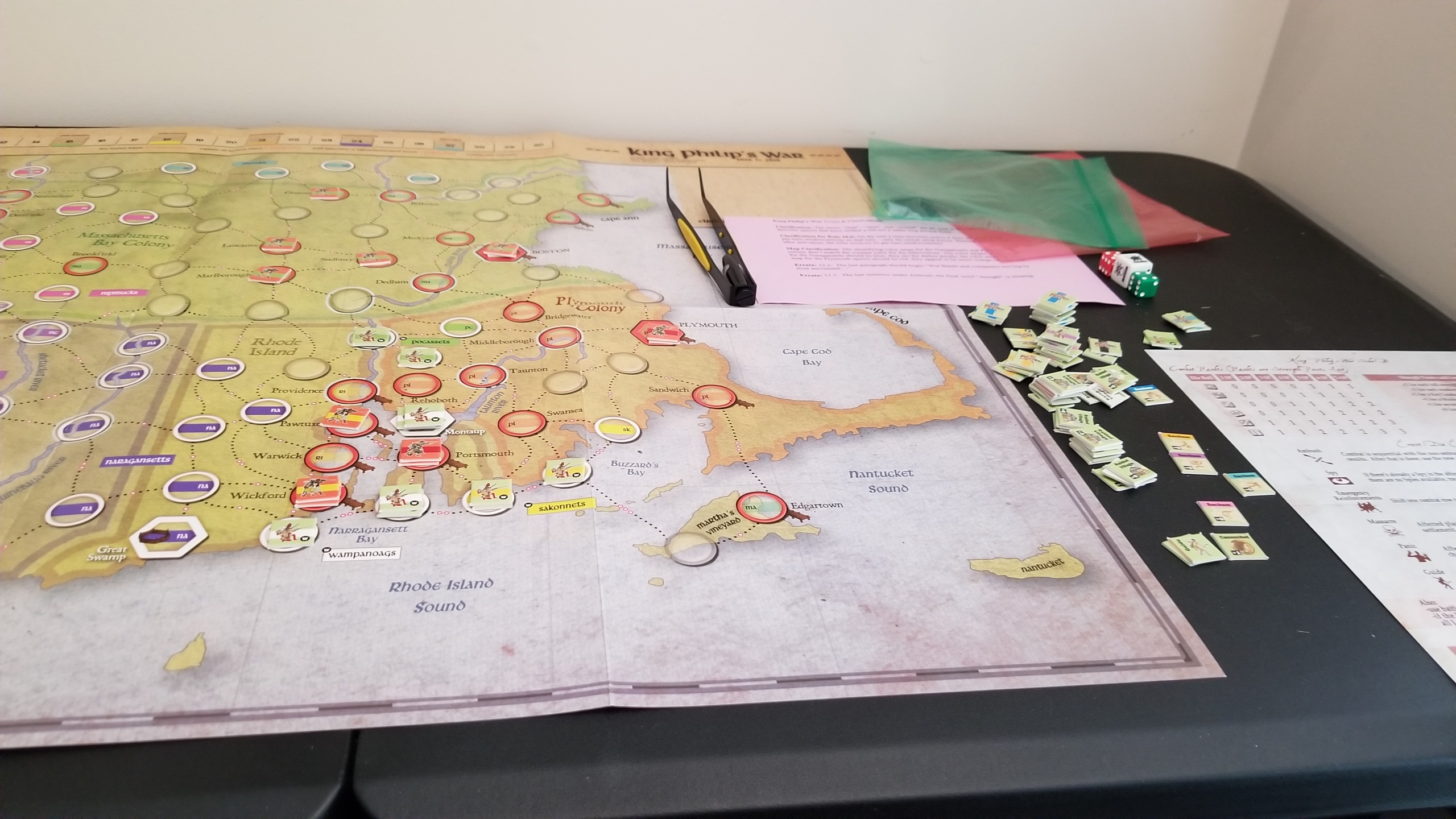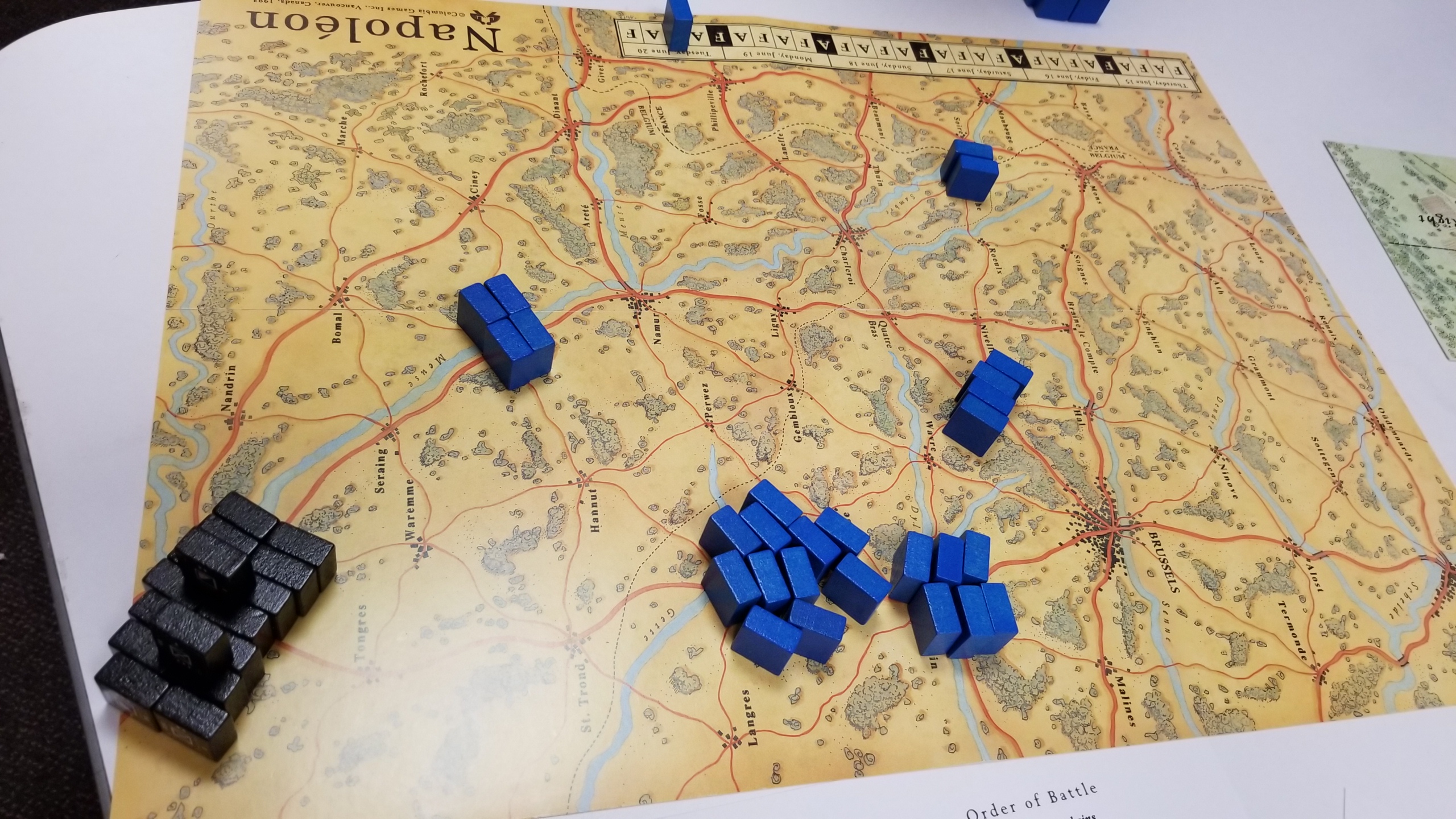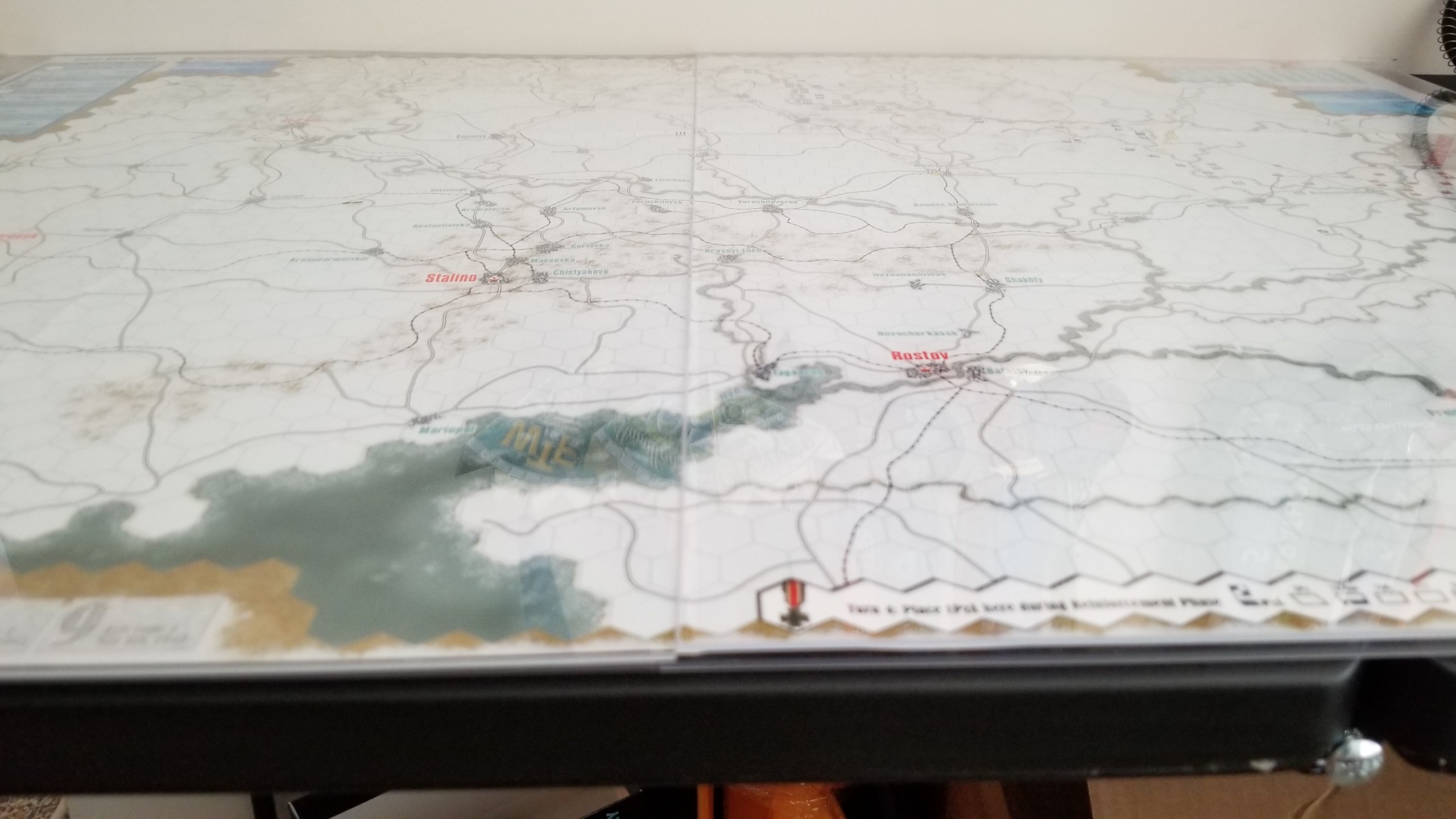 Conductor we have a problemI knew that Unconditional Surrender was too large for my current setup - just one half of the map takes up 80% of my table - but I didn't realize Holland was too. The main Holland map fits fine, but I neglected to notice it has a map section you must append to the top, making it too large. Curse my small tableInstead I will play Warriors of God by MMP, a game about the 100 Years War