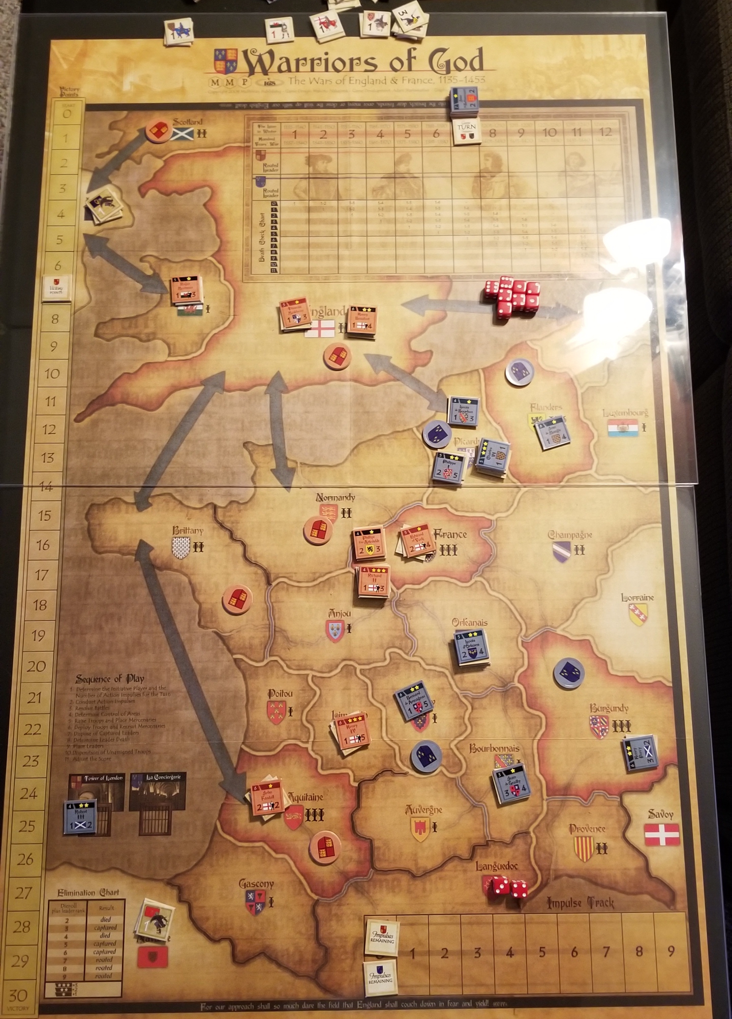After six turns - English have only a slight lead in victory points but have substantial real estate
