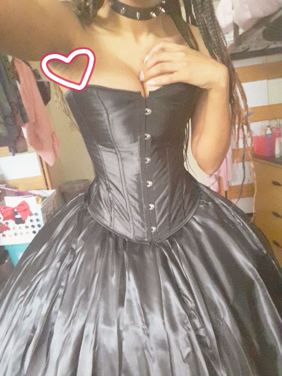 my corset and skirt came in the mail today so heres a pic of how i look so far: i still need the spike bracelets and the wig to arrive tho :/